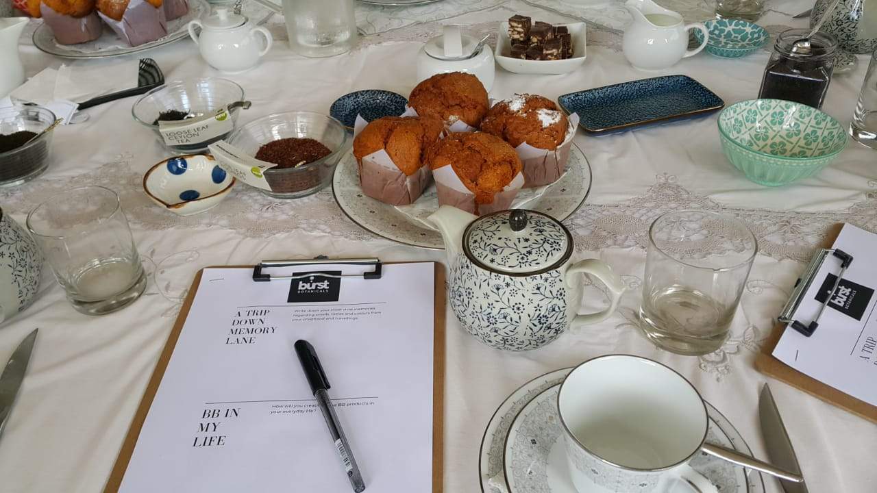 The hostess offered Rooibos-, English-, Earl Grey and Oolong teas. Each guest had a small teapot to steep their combination of flavours from the Burst Botanicals infusion range with their tea.